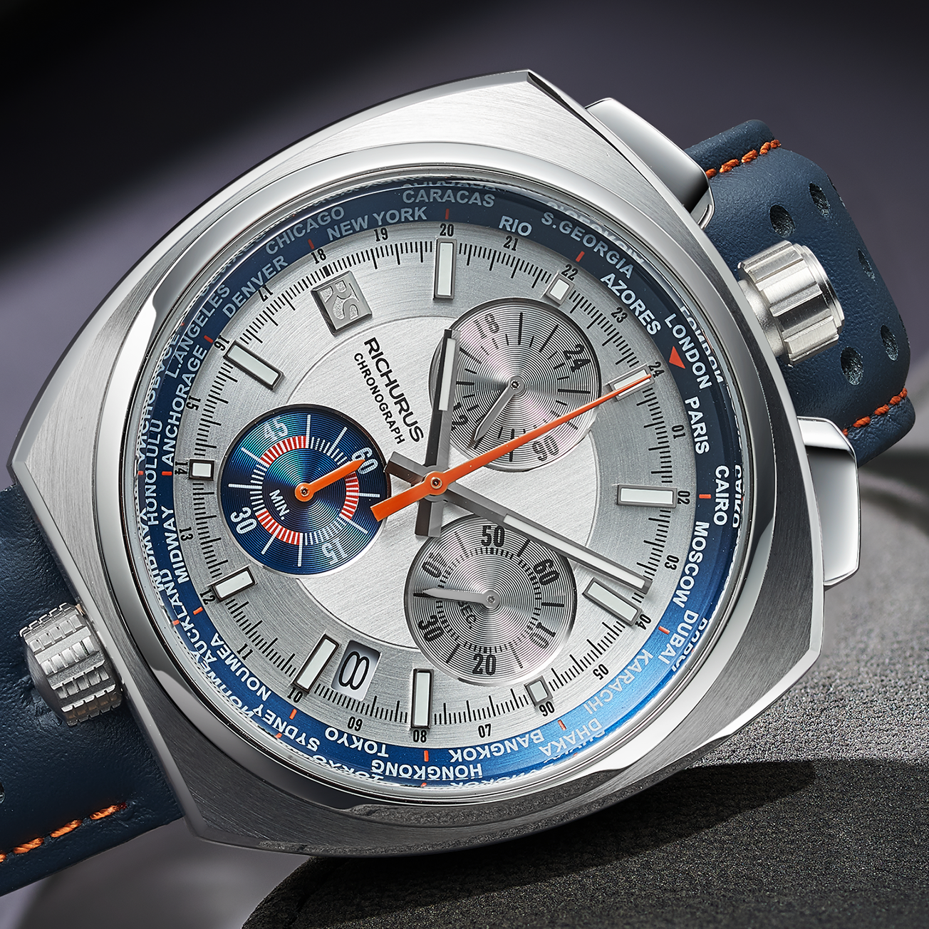 A modern reinterpretation of the classic 1979 bullhead racer — blending vintage racing spirit with contemporary engineering. Featuring a curved case, top-mounted pushers, and a dynamic layout built for both comfort and precision.